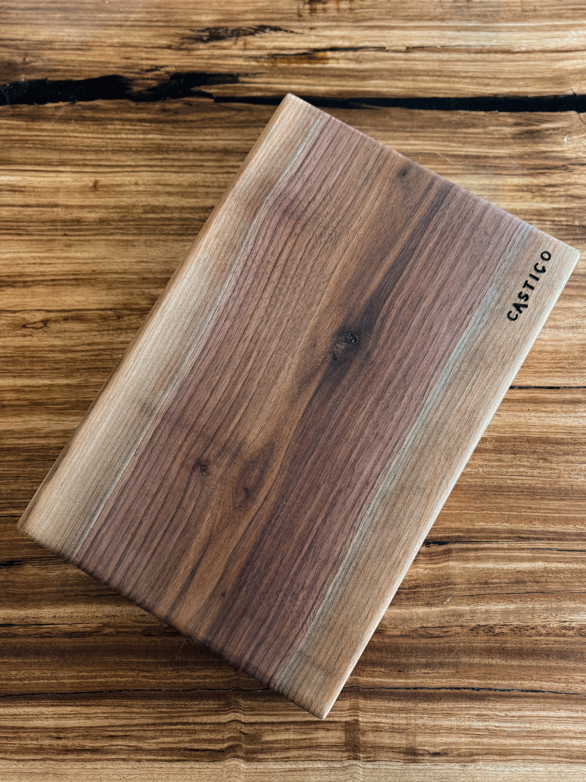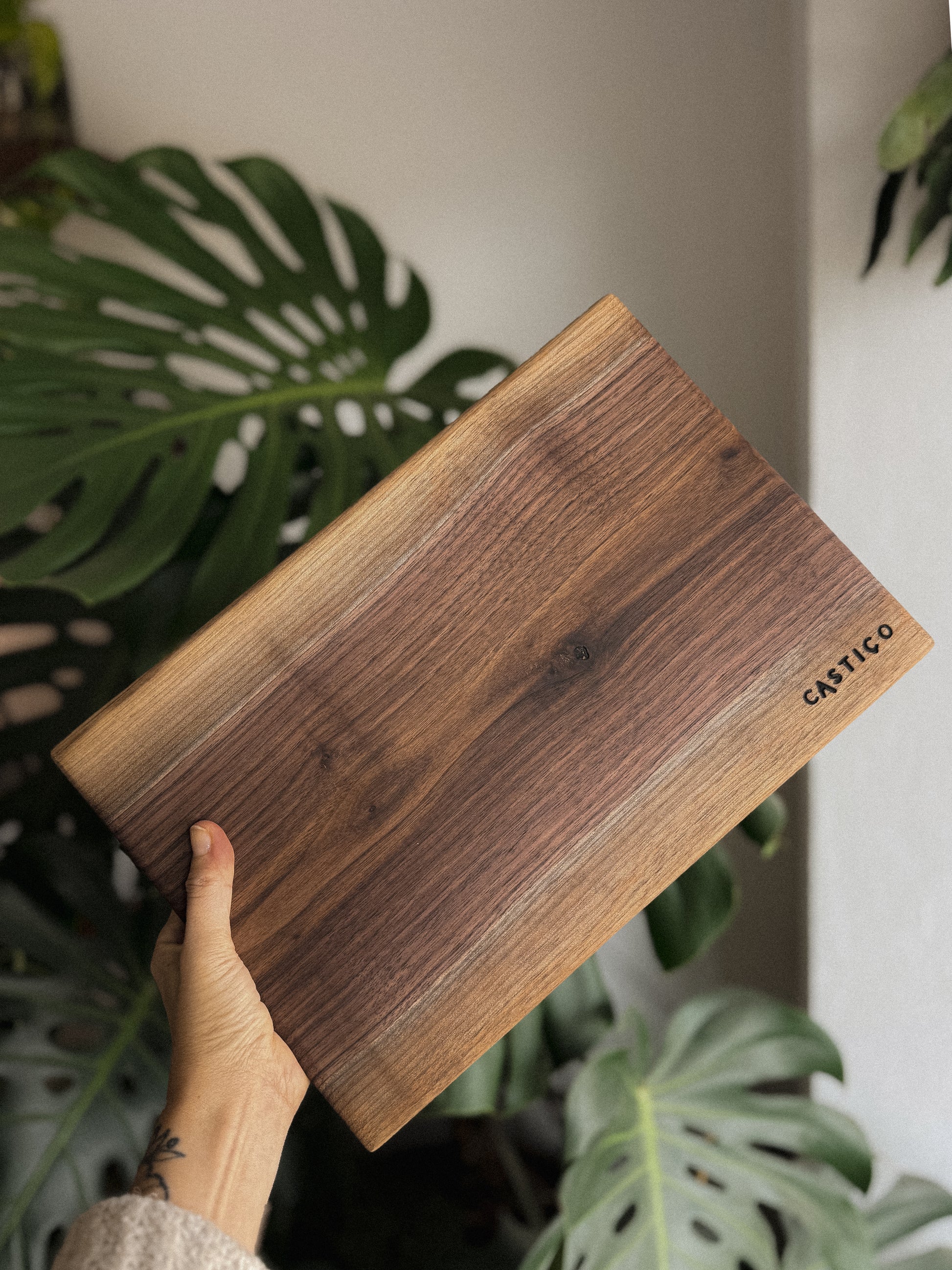 Tábua de corte em madeira maciça de Nogueira Americana.